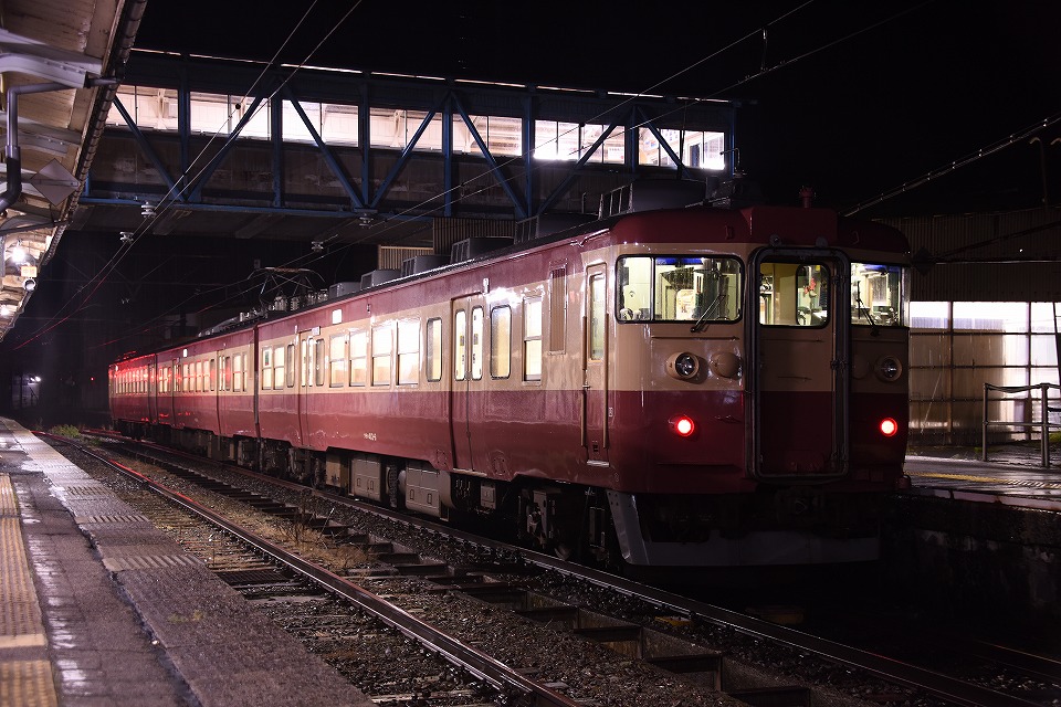 | 「夜行急行」は23時過ぎに直江津に向けて発車していった。 約30秒の動画はこちら。 さて、日本海ひすいラインに転戦する。 どこかで時計を入れて「夜行急行」を撮影できるかな。 |