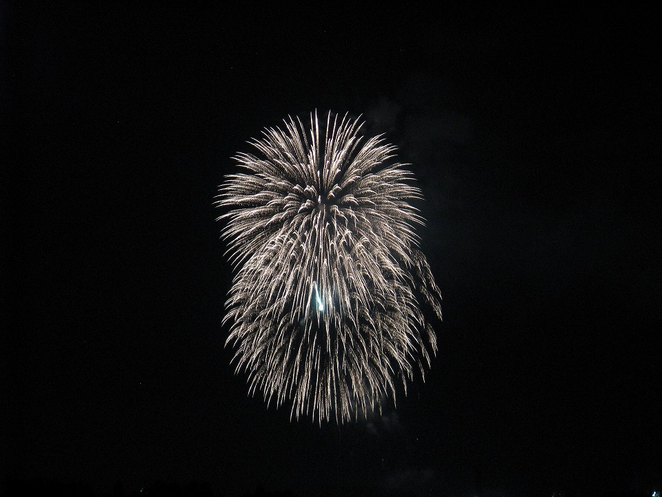 | 妙高市の旧新井市で「復興祭り」の花火をやっていた。 ラジオの天気予報では妙高地域に大雨警報が出ているって。 |