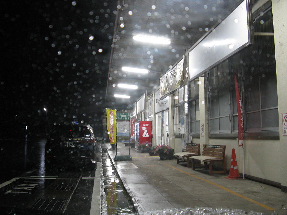 | 旧新井市から国道18号で旧妙高高原町に差しかかった頃に急に強い雷雨になった。 天気予報どおりだね。 雨も降っているし、夜行急行をどこで撮影しようかいろいろ考えた末、 115系との並びが撮影できる妙高高原駅にした。 |