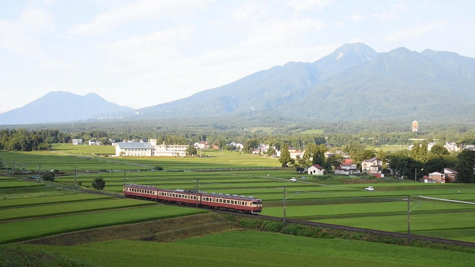 | 今回の〆は、いつもならウオーミングアップで撮影する115系のすれ違い狙い。 ここは俺のスペシャルポイントなのだが、今朝はなんと先客が4人もいた! クルマは3台で、長野・松本・熊谷ナンバーだった。 みんな、俺のページを見て来てくれたのかな。 嬉しいけど、正直ちょっと悔しい。 ま~い~か。 妙高山には雲がかかり始めたが、まだよく見えている(この後だいぶ雲がかかった。)。 しかし、すれ違いの位置がまたいつものように奥のカーブ付近だった…(僅かに2本の電車が写ってるの分かる?)。 約32秒の動画はこちら。 |