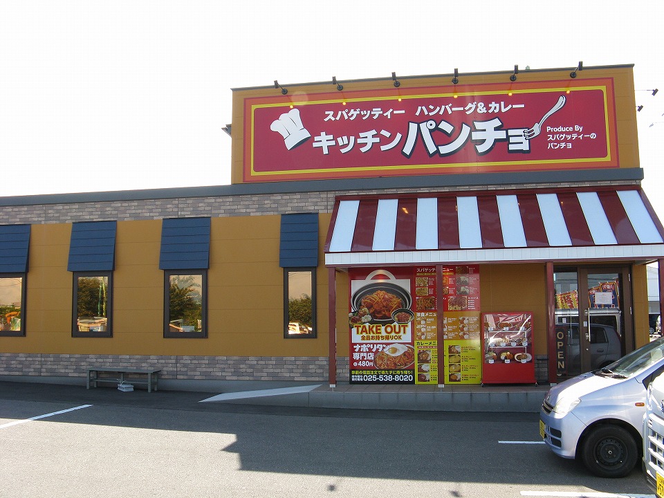 | なななんと、俺が大好きなナポリタンの「パンチョ」 (厳密にはちょっと業態が違う「キッチンパンチョ」だが。)が上越にできていた! 「パンチョ」のナポリタンは、俺にとって上京したときのお楽しみである。 コロナ禍のこのご時世で、2022/09現在、 か~ちゃん(妻)が入院している東京の病院に介護に行けない。 ってことは「パンチョ」もすっかりご無沙汰なのだが、 まさか、上越で喰えるとはっ! この店はちょっと前に見つけていて、今日は寄ったゾ! |