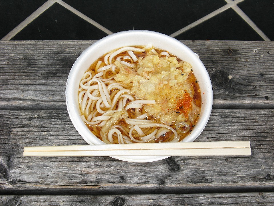 | 今日は天ぷらうどん250円ナリだな。 クルマん中で、いっただっきま~す。 |