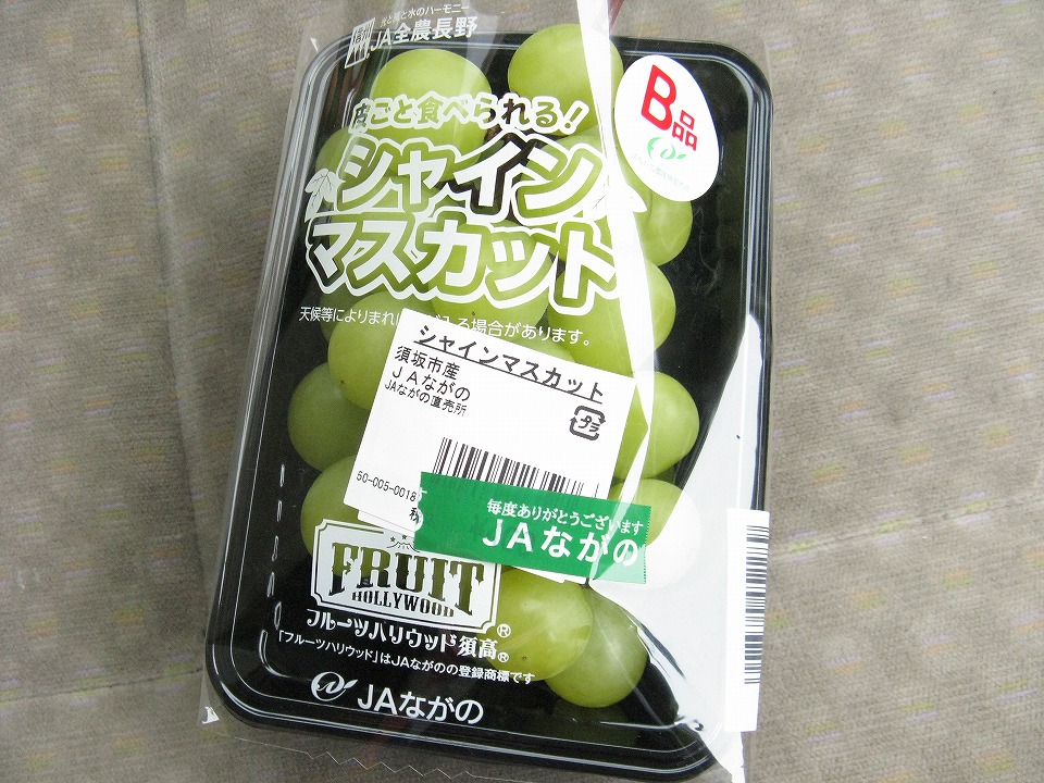 | 今日9月23日は「長野県ぶどうの日」。 信州ではぶどうが旬を迎えているので、ぶどう好きの俺にとっては嬉しい季節だ。 帰りがけにJAの直売所に立ち寄った。 俺が大好きな「ナガノパープル」はそろそろ終わりだが、 これからは「巨峰」や、新品種の「クイーンルージュ」などが出回る。 ど~でもい~けど、「クイーンルージュ」って「女王の口紅」でしょ。 なんかSMクラブの店名にありそうな気がする(笑)。 全国的に人気のシャインマスカットも、この写真のようなB品 (この個体はちょっと小粒&収穫してちょっと日が経ち、軸が茶色くなっている。)なら、 なんと400円だよ。こういうのが手に入るのは、生産地の強みだね。わはは。 緑のテープを剥がして撮影すればよかったね。 よ~く見るとテープの下に「\400」の文字が透けて見えるよ。 ぶどう好きの俺は、ひと房ぐらい一気に喰っちゃうよ。 |