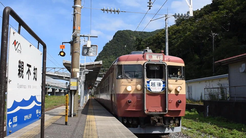 | 「急行2号」を撮影後、国道8号を普通に走って有間川駅に来たら、 ちょうど「急行2号」が通過していった。 糸魚川で10分、能生で14分停車している間に俺が抜いたんだね。 この後撮影した「急行3号」は、諸般の事情によりUPはなしね(笑)。 |