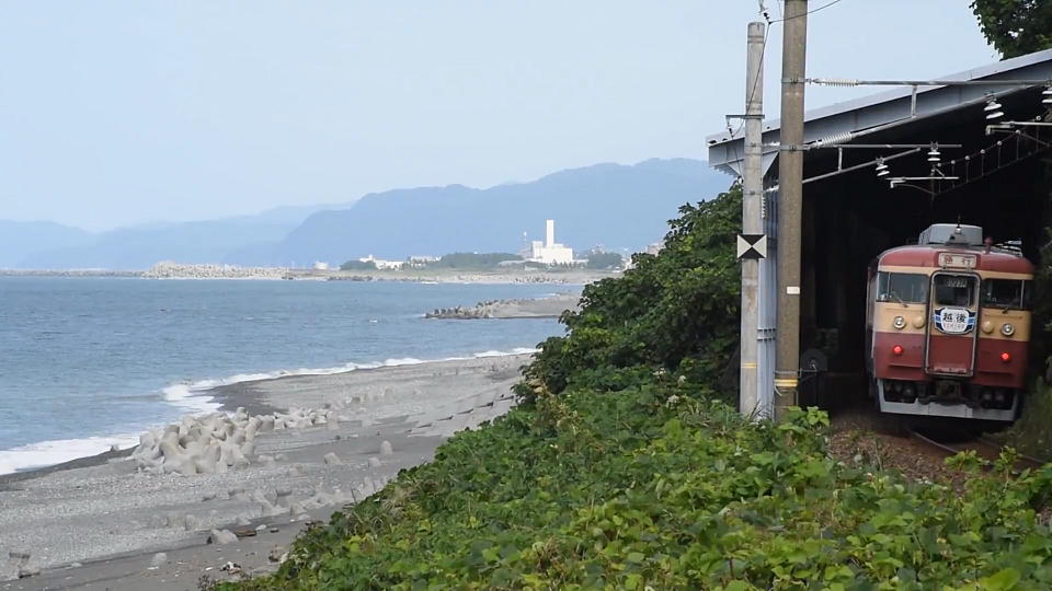 | 「急行2号」は、初めてのポイントで撮影。 直江津方面行きの後追い限定のポイントだ。 ただ、相当な望遠を使えばスノーシェッド越しに富山方面行きの電車の先頭を狙えはするが、 ほとんど意味ないかな。 約01分01秒の動画はこちら。 スノーシェッドを出て消えゆくまで撮影したので、ダラダラと長いです。 |