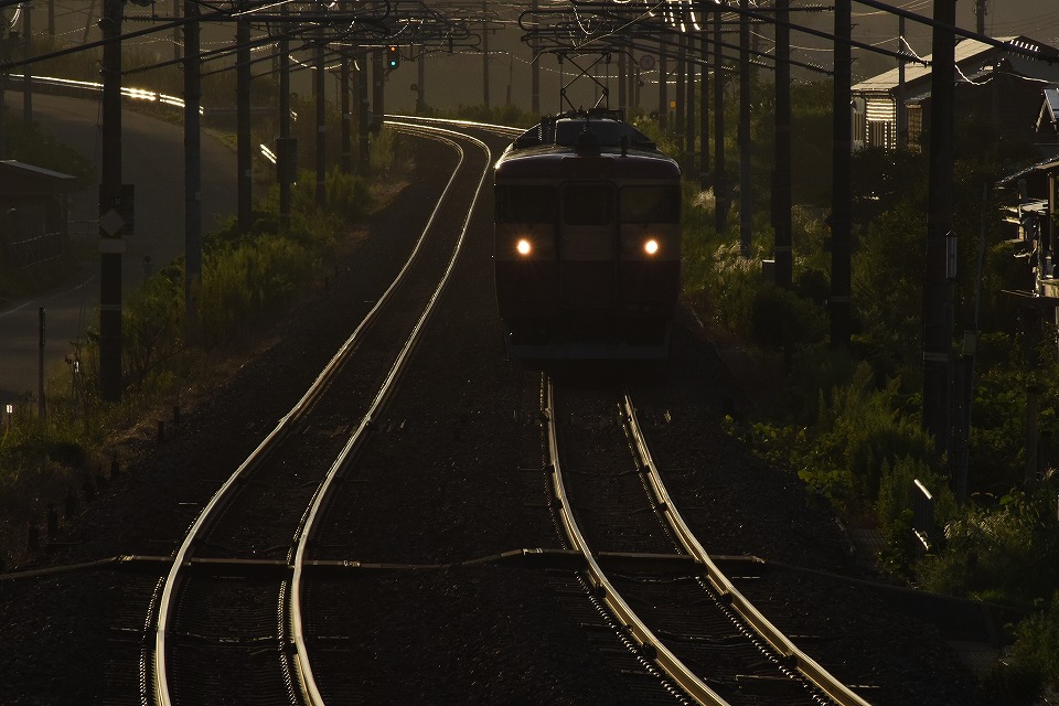 | いい感じの逆光になった頃に「急行4号」が通過していった。 撮影はスチールのみ。 今日はこれでおしまい。 |