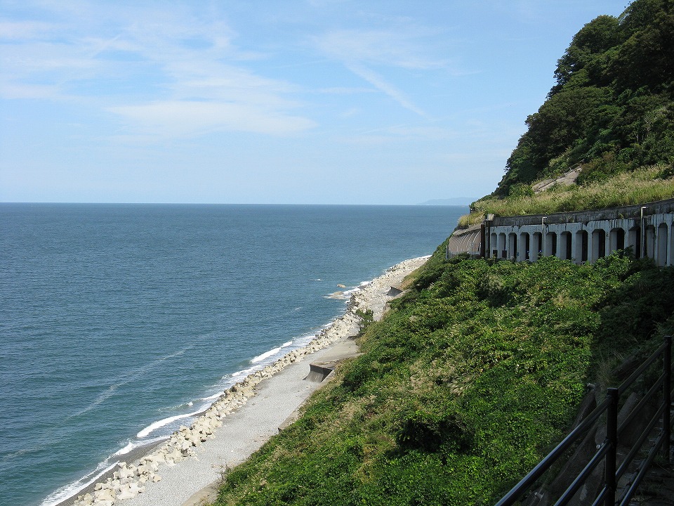 | 快速の撮影後は、俺の「田んぼの記憶」を頼りに急行沿線をナメてみたが、 谷浜、能生、青海と全滅…。 しゃーないので、あまり意味なく親不知駅で通過シーンを撮影した。 今までこの駅のホームでは撮影していなかったので、よかったといえばよかったけど。 約24秒の動画はこちら。 |