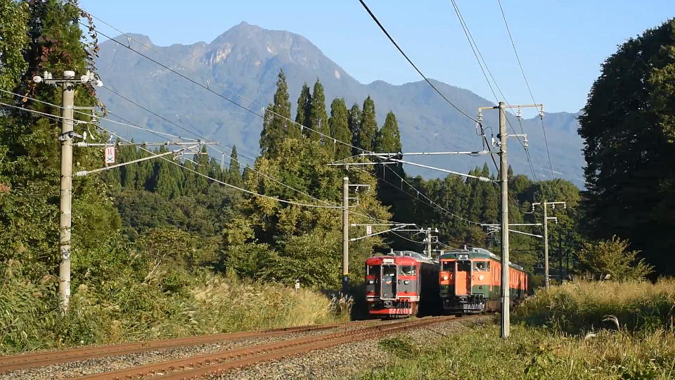 | 【おまけ】 太好了(やったね)! 黒姫のスペシャルすれ違いポイントで狙っていたら、今日はバッチシのタイミングだった! しかもこっちに向かってくるのがバッチシ湘南色! そしてもう片方はバッチシしな鉄色だから、しな鉄の沿線で撮影したってこともバッチシ分かるし。 バックの妙高山も雲1つなくバッチシ! これでこのポイントは卒業だな。 約23秒の動画はこちら。 スチールで撮影していた先輩もご満悦で、「満足満足!」とニコニコだった。 でも「動画でも撮影したかった…」とのことで、ちょっと未練が残っているみたい。 |