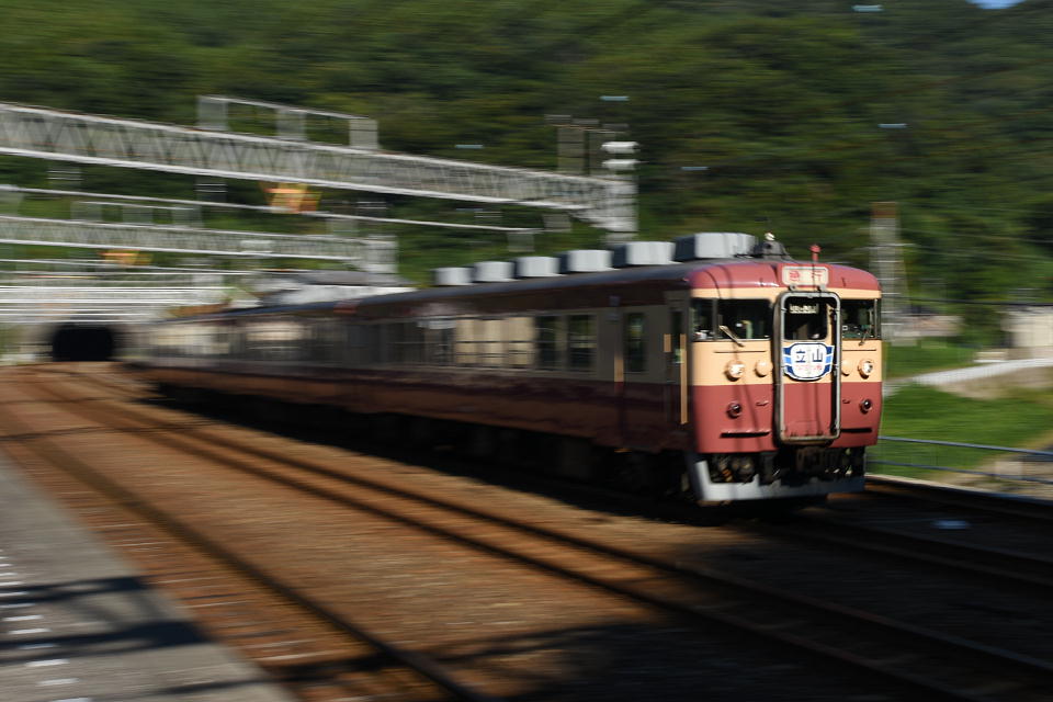 | 糸魚川付近で「急行2号」を撮影してから、もうこれで帰ろうと思って国道8号を直江津方面に走ると、 結局「急行3号」とどこかで行き合うので、よっぽどパスする決意がない限り撮影せざるを得ない(笑)。 今回は名立駅に来て「たまには」と流し撮りに挑戦したが、下っ手クソ…。 「急行4号」はパスして、今日はこれで終わりぢゃ。 1日いいお天気で暑いぐらいだったが、かなりいい撮影ができた。 よかったよ。 |