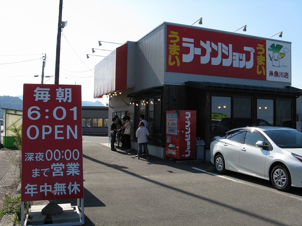 | 「急行2号」を撮影したら、信州へ戻り方向にする。 でもハラが減ったので(さっき大盛のそばを喰っただろっ!)、 前から気になっていた、国道8号沿いの「ラーメンショップ糸魚川店」に入る。 |