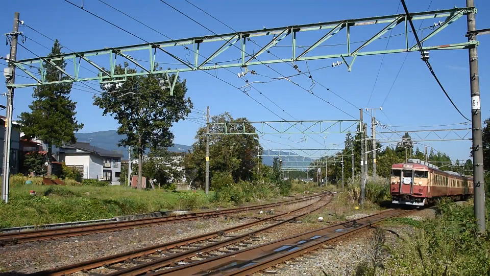 | 快速の撮影が終わり、次は「急行1号」を撮影しようと直江津に出た。 直江津発車後の直線で狙ったが、そうだ「1号」は「急いで行かない」んだった。 のろのろ走るので動画としてはあまりおもしろくないから、 動画からのキャプチャーの画のみにするね。 それに動画だと、俺が構えているすぐ脇の家で電動式のビーバー(草刈り機)を使い始めて、 エンジン式に比べれば大人しいが、それでもやかましい音が入ってるし…。 画もビミョーに傾いてるし…。しっかりと水平をとったはずだったんだけどな~。 |