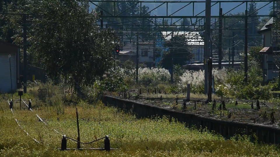 | 下り快速の撮影は旧関山駅を入れてみた。 信号は生きているね。 画の奥を右から左に快速が通っていった。 こんなアングルこそ、よっぽど通わないと撮影しようとは思わないだろうね。 約17秒の動画はこちら。 |