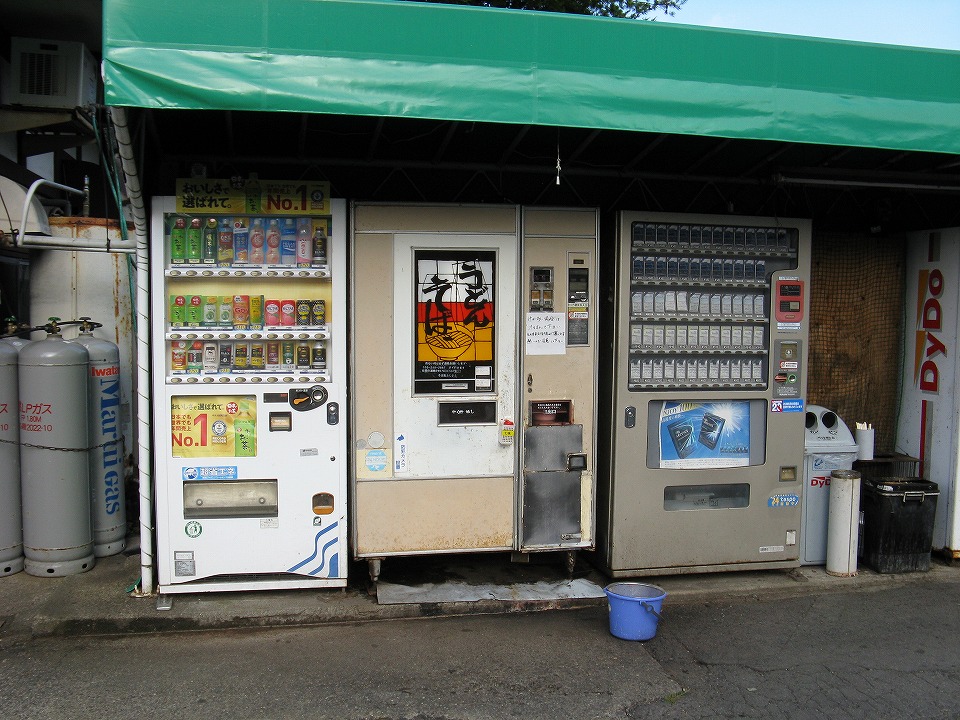 | さて、明けて日曜日。 昨日で黒姫のスペシャルすれ違いポイントは卒業したので、今朝はゆっくり出発した。 今日もいいお天気…になるはずが、山の信越国境はお得意の霧。 「う・そ自販機」がある信濃町も霧だ。 |
