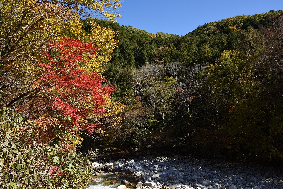 | 森林鉄道の撮影が終わり、上松の町に戻りながら紅葉を撮影する。 |