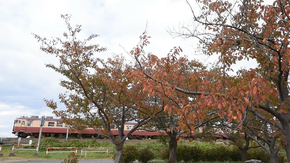 | 赤い「紅葉」の地点をさっきの中立橋と逆方向から撮影。 こっちは快晴の空をバックに順光でバッチシ撮影できた。 約39秒の動画はこちら。 2種類ある汽笛のうち、緩い音の方が鳴っていい感じ。 ところで、このポイントでの撮影には注意点が2つある。 ①:撮影場所は木道なので人が通るとカメラが揺れる。三脚を立てるなら撮影中に歩行者が通らないことを祈るはかり(特に動画。)。 列車が通過するときに歩行者が来ても、歩行者に向かって「通るな」なんてエゴマニアなことは言わないように。 ②:線路の手前にある松の木の処理。この画のDLの手前に映っているヤツ。この木が気になる人は、うまく避けたアングルを工夫してね。 今後、この松が成長したらこのポイントでの撮影は難しくなるかも。 |