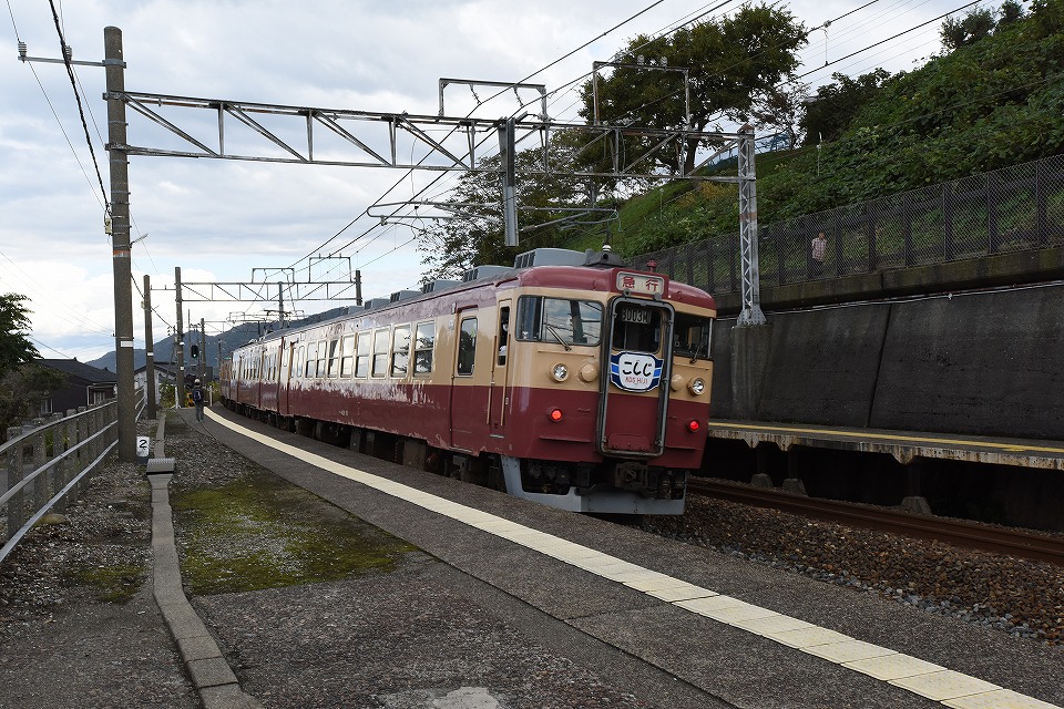 | 直江津に向けて発車していった「急行2号」。 写真右上の散歩中のおばちゃんが、俺らテツを見て「なにごと?」という表情 …のような気がする。 今週はこれでおしまい~。 |