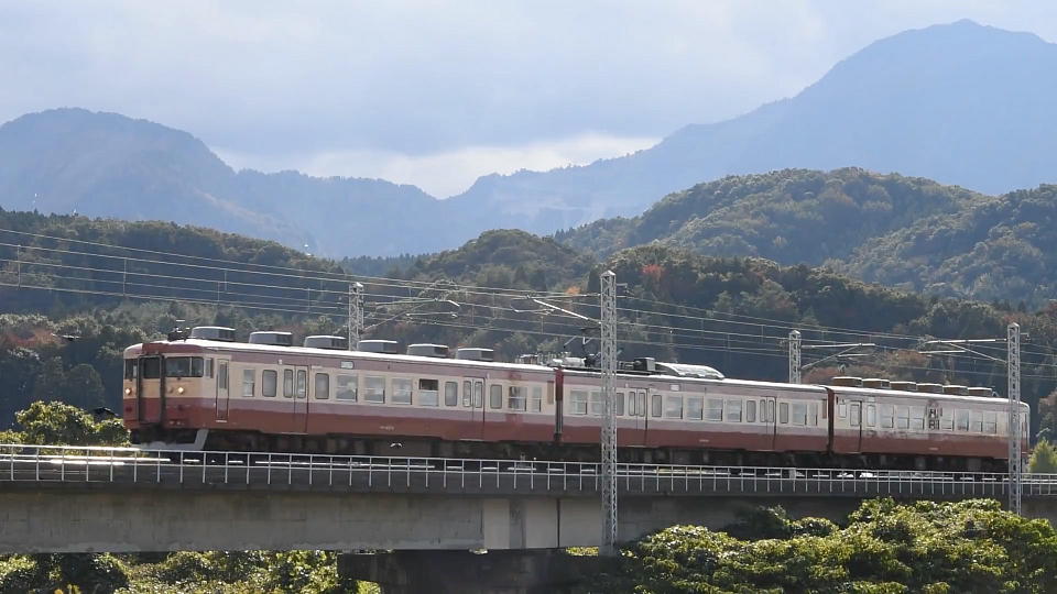 | さて、朝メシを喰ったら455・413系快速の撮影。 紅葉を入れたいのだが、いい場所が見つからない。 「困ったな~」とウロチョロしていたら、遠景だけど少しは紅葉っぽい木々を入れられるポイントがあった。 ここからちょっと離れたR18にはもう1人テツがいたよ。 俺とおんなじことを考えていそうだ。 下り快速の約13秒の動画はこちら。 橋が傾いているように映っているけど、これは本当に傾いています。 なお、この列車の前の上り快速も撮影したんだけど、ちょっと露出オーバーだったので、UPはなしね。 |