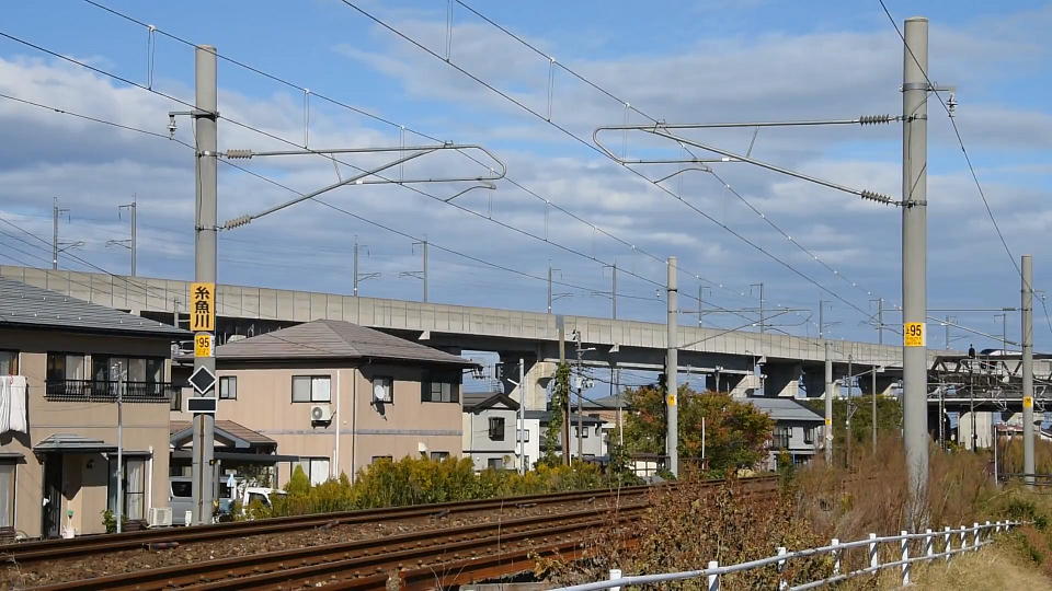 | 「急行2号」は賭けで「はくたか561号」との行き合いを狙ったが、ハズレ。 前回のようなバッチシのタイミングとはならなかった。残念。 この画は動画からのキャプチャーだが、右端に辛うじて2列車が確認できる。 バッチシのタイミングだった2022/06/18の約30秒の動画はこちら。 その26のページと同じ動画です。 |