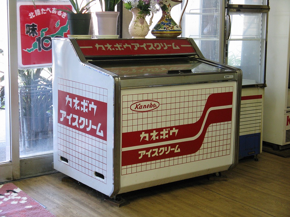 | 「蒸汽茶屋」の店内にはカネボウデザインのアイスのショウケースがあった。 |