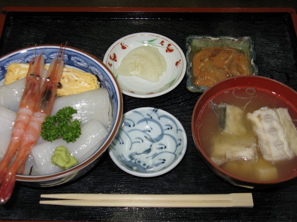 | イカ刺し丼1,100円ナリ。 ビミョーにピンボケ…。 |
