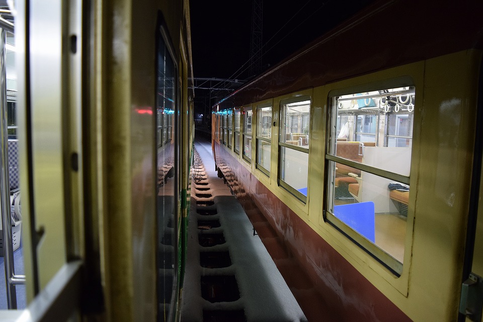 | 【おまけ】 ほんの3日前に「定期復活」という衝撃的なアナウンスがあった 長野電鉄3500系(元営団地下鉄日比谷線3000系)のN8編成。 てっきり「もう本線に復活することはなく引退かな~」なんて思っていたのだが、 2023(令和05)年01月17日まで、ほぼ毎日運転することになった。 この形式はこれまでもさんざん撮影したが、1月で完全引退なので、 今後少しは撮影しに行く(かもしれない)。 善光寺下駅を発車して、地下から顔を出す約26秒の動画はこちら。 完全引退までの運用での長野発湯田中行きは、超レアなのだよ。 なお、動画が2回揺れているが、 これは後から来たテツが身を乗り出すために線路際のフェンスにもたれかかったから。 そのフェンスに少し触れていた俺の三脚もつられて揺れてしまった。 せっかくいい感じで撮影していたのにまったくもー。 また、最初に左側から聞こえるガリガリ音は、地元のおばちゃんの雪除けの音。 これは、ま~い~や。生活音だからね。 さて、ここまででいったんUPしておく。 今晩は、455・413系の夜行急行「HolyNightExpress」号が運転されるが、撮影はどうしようか考え中。 天気悪いし、寒いし、夏に撮影しているし…(その33のページはこちら。)。 夏は妙高高原駅で115系の湘南色と並んだときがあったが、今日は初代長野色だ。 でも、雪などの影響で夜行急行の到着が遅れたとしても、しな鉄は接続列車ではないのでとっとと発車していっちゃうから 並びの撮影ができないかもしれないしな~。ど~しよ~かな~。 |