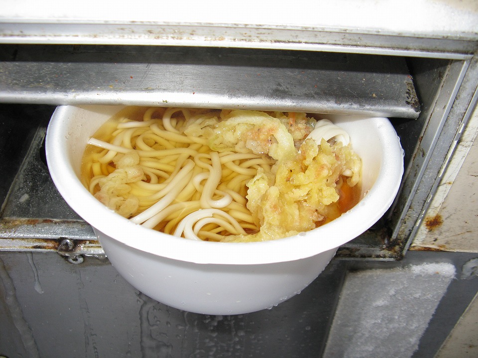 | 喰い終わって出発しようとしたらガテン系のに~ちゃん2人がクルマで来て、 ニコニコしながら食していた。 |