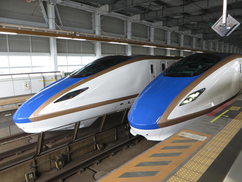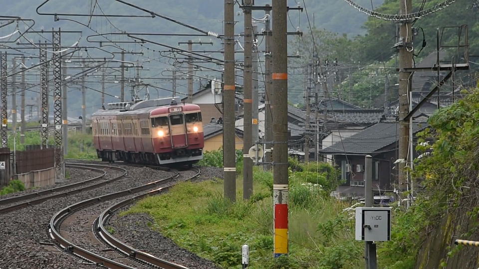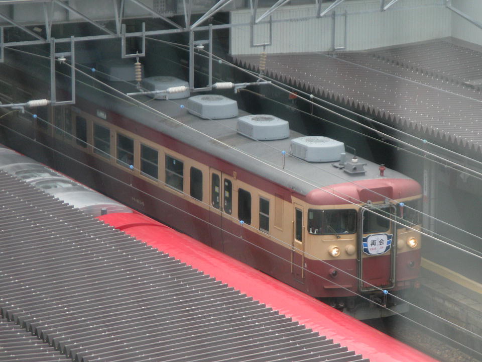 | 2025(令和07)年のGWは、「サンライズ出雲92号」と南小谷行きから白馬行きになってしまった「あずさ5号」に乗りテツしてきた。 白馬から大糸北線で糸魚川に出て、新幹線で信州に帰ろうとしていたら、在来線のホームに懐かしの?455・413系がいた。 そっか、糸魚川ではコイツを撮影できたんだった・・・。それほど、455・413系から意識が離れてしまっていた、ということだ。反省ザル。 クモハ413-6には「再会」のヘッドマークが付いていた。 俺が乗る「はくたか564号」の到着が迫っていたので、新幹線ホームから撮影しただけ。 ちなみに、反対側のクハ455-701には「復活」が付いていたらしい。 |