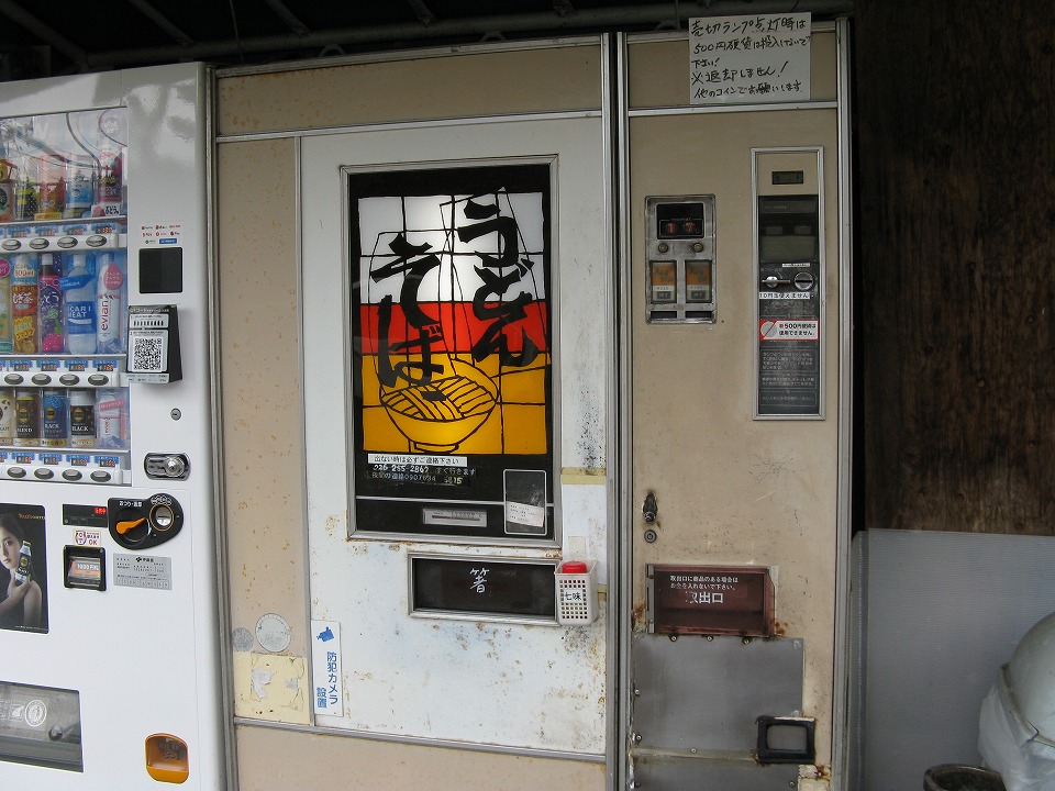 | さて、GWも終わり、梅雨が近付いてきている。今日は昼過ぎからは降る予報だ。 天気がよくなかろうとも、455・413系の撮影に行けるということが単純に嬉しい。 まずは、2025/05現在も健在の「う・そ自販機」でハラごしらえ。 |