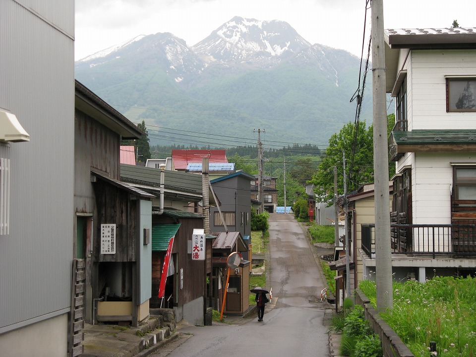 | 温泉は、お馴染みの妙高温泉「大湯」400円ナリ。 ここで30分ほどの~んびりした。 写真の傘のおじさんがいい雰囲気でしょ。このおじさんも大湯に来た。 |