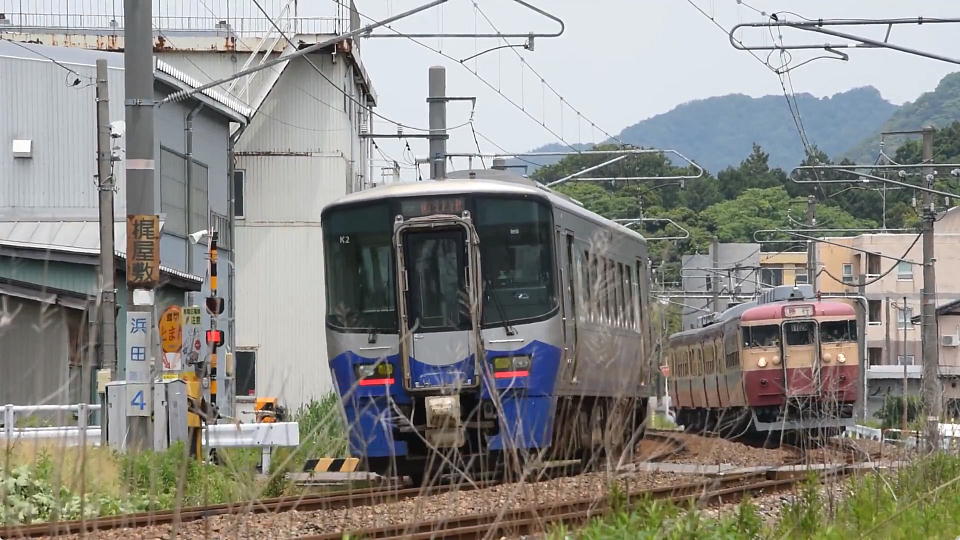 | 鈍行の撮影が終わったら、「急行」の撮影をするべく、糸魚川に転戦する。 デッドセクション付近では、「急行1号」が1635Dとすれ違いそうなので適当に構えていたら、 ほぼほぼいい感じですれ違ってくれた。 これはラッキーだったね。 ただ、線路の敷地の枯れ草がやや邪魔だが、この際贅沢は言っていられない。 撮影できただけでもありがたいよ~。 約39秒の動画はこちら。 |