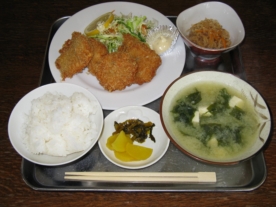 | サバフライ定食980円ナリ。 普通盛りだが大変なボリュームだ。 御味御汁は相変わらず「あまりリキを入れてません」的な味(笑)。 なのに、コメより大きい器に入って出てくるンだよね。 |