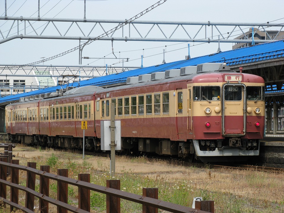 | 有間川駅で「急行2号」を撮影後、のんびり直江津駅に来てみたら、 455・413系急行がいたので撮影した。 えちごトキめき鉄道が2025/05と06に企画している「クハ455にヘッドマークを付けないよ」の期間中なので、 クハ455にはヘッドマークが付いていない。 1980(昭和55)年頃に東北本線沿線で急行の刷り込みを受けた俺にとって、これはとても懐かしい光景であり、嬉しいんだよね |