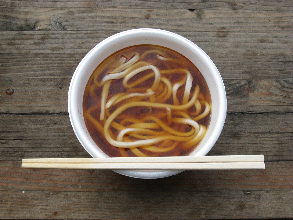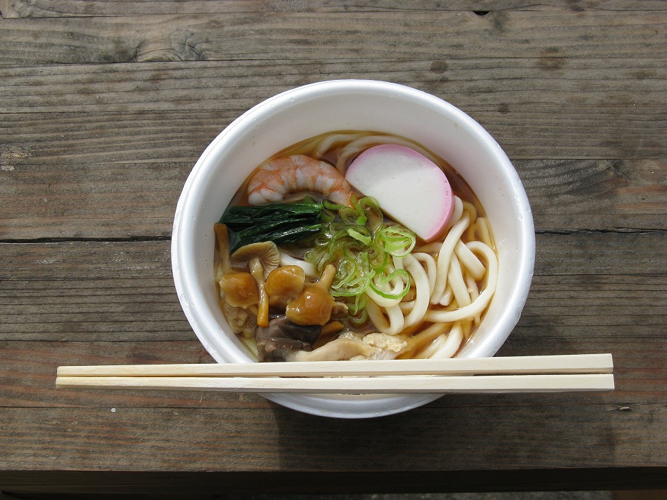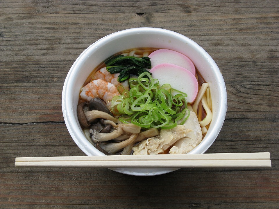 | 次に、自宅で軽く湯通ししてきた 『国産小麦腰用 食塩ゼロ ソフトめん ゆで』(髙山麺業株式会社:前橋市)108円ナリ の半分を投入して、改めてトッピングした。 ど~でもい~けど、うどんにはやっぱいくらかの塩分が俺は欲しいな。味気ね~。 |