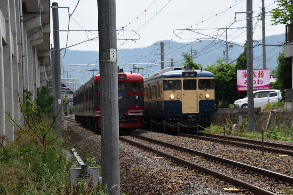 | 昨日に続いて、昼過ぎに115系のすれ違いを狙ったが、またダメだった。 この写真は「ボロボロ」さを晒している。 何も申しません・・・。 |