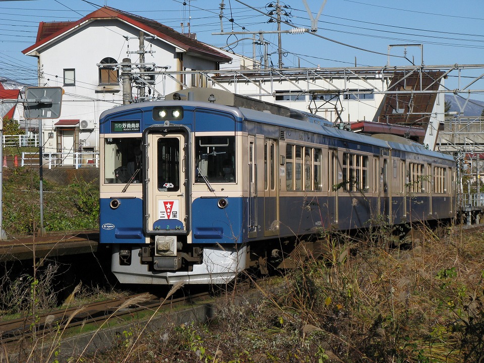 | 上りをどこで撮影しようかと関山駅周辺をロケハンしていたら、 127系スカ色が、2両単独で来たので慌ててコンデジで撮影した。 普段なら455・413系で走る8350Mだ。 |