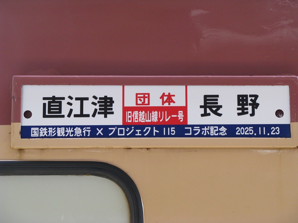 | この企画専用のサボ。乗り継ぎ企画だが、455・413系自体は長野までは行かないので、この表記はどうなんだ? 1度でいいから、交直両用色の455・413系に長野まで来ほしかったな~。 |