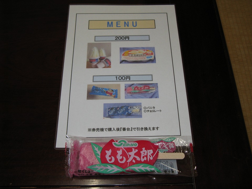 | ここでは、風呂上がりに「もも太郎」100円ナリを喰うのも楽しみなのだよ。 |
