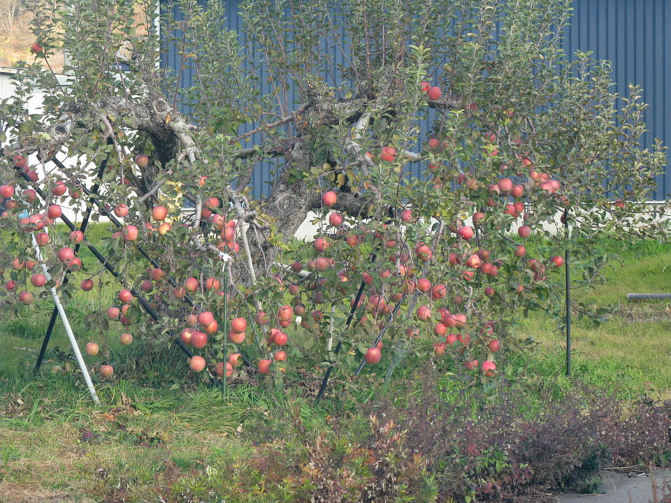 | 今週末は土日ともいいお天気のようなので、 少なくとも関山での妙高山をバックに柿を入れたアングルで満足のいく撮影はしたい。 その他は、まあテキトーに。 信州はリンゴの収穫がピークを過ぎた辺りだ。この木はまだ収穫されていないが、 そもそも、手入れが行き届いていない木のような気がする姿だから、ちゃんと収穫するのかな。 |