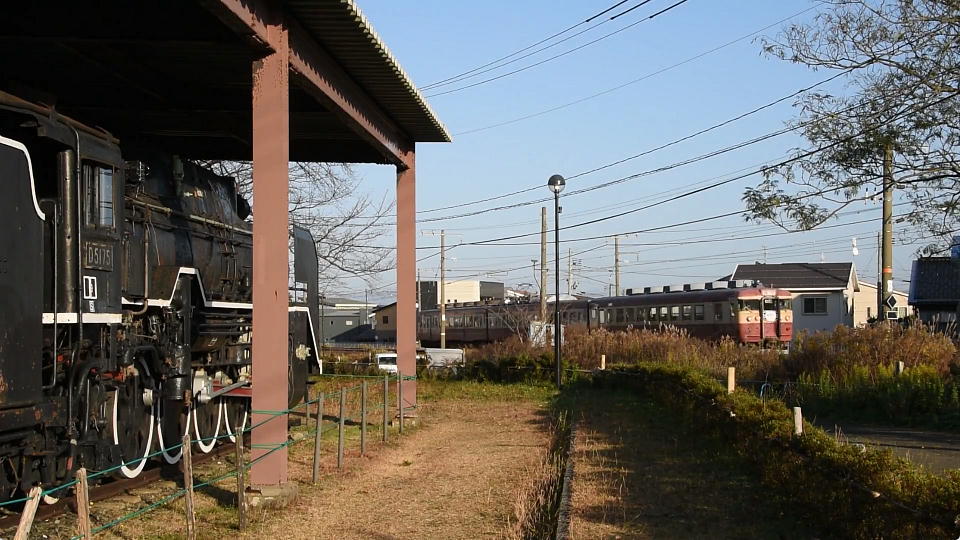 | メシを喰ったら、「急行1号」をどこで撮影しようかとうろちょろしてみるが、 いいポイントにはどこも撮りテツが既に陣取っていた。 交直両用色の塗り替えがアナウンスされてから、撮りテツが明らかに増えている。 ポイント探しの途中で梶屋敷駅にトイレを借りにきた(笑)。 |