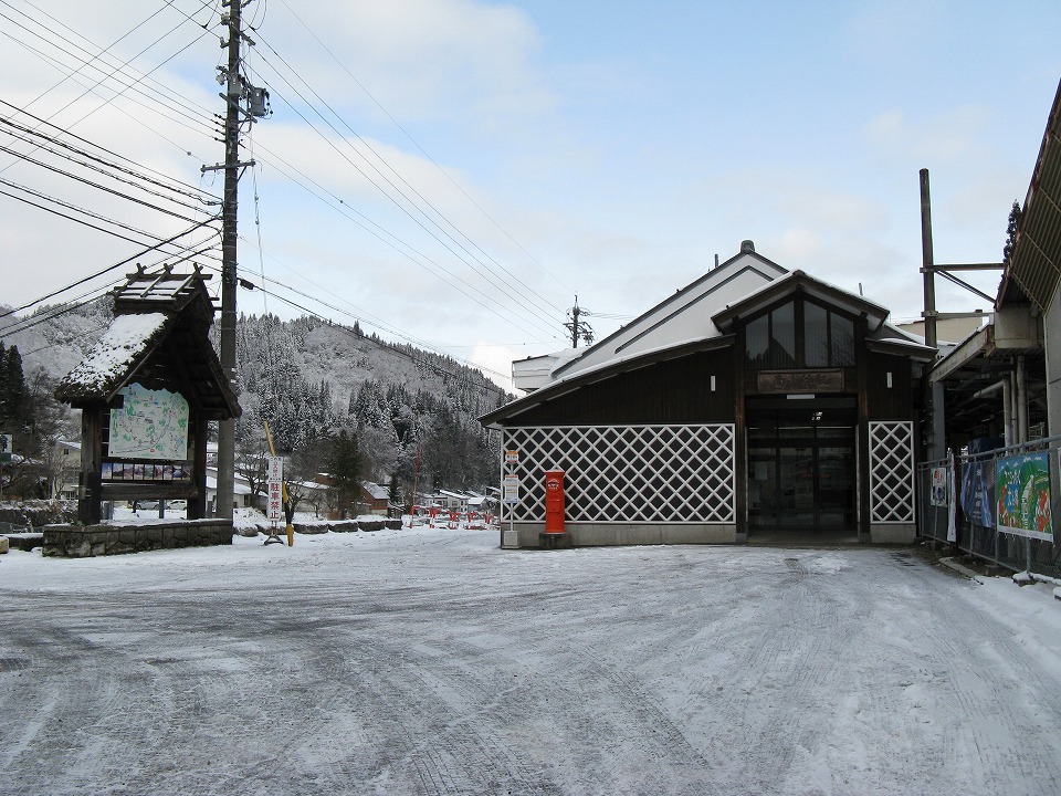 | さて、朝になり、ゆるゆると北上して、大糸線南小谷駅に来た。 ここはJR東日本の直営駅で「みどりの窓口」のある貴重な駅だ。 年末旅の特急券で変更したいのがあるので、どうせなら、とここでやってもらう。 南小谷駅のみどりの窓口はいつまであるか分かんないしね。 |