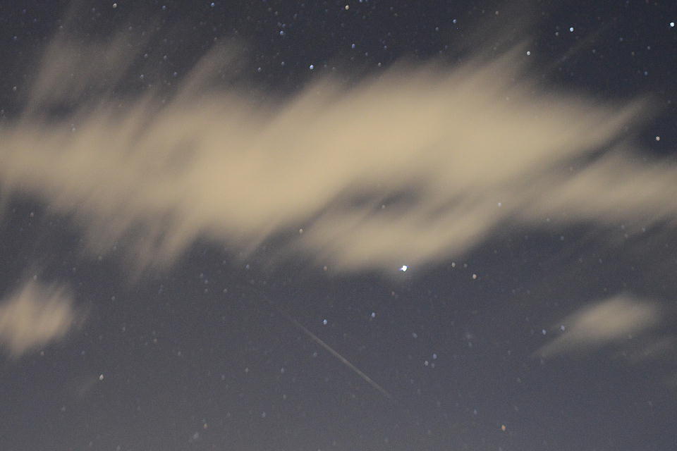 | 1枚上の写真から、流れ星の部分をトリミングしたもの。 ちょっとピンボケでしたとさ(笑)。また来年リベンジだね。 |