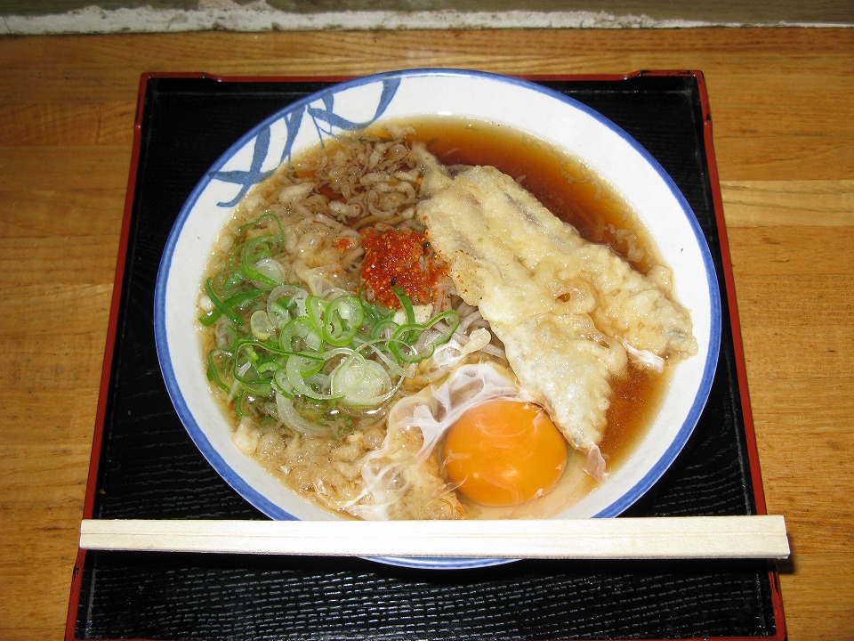 | めぎす天そば600円ナリ+生玉子80円ナリ。 |