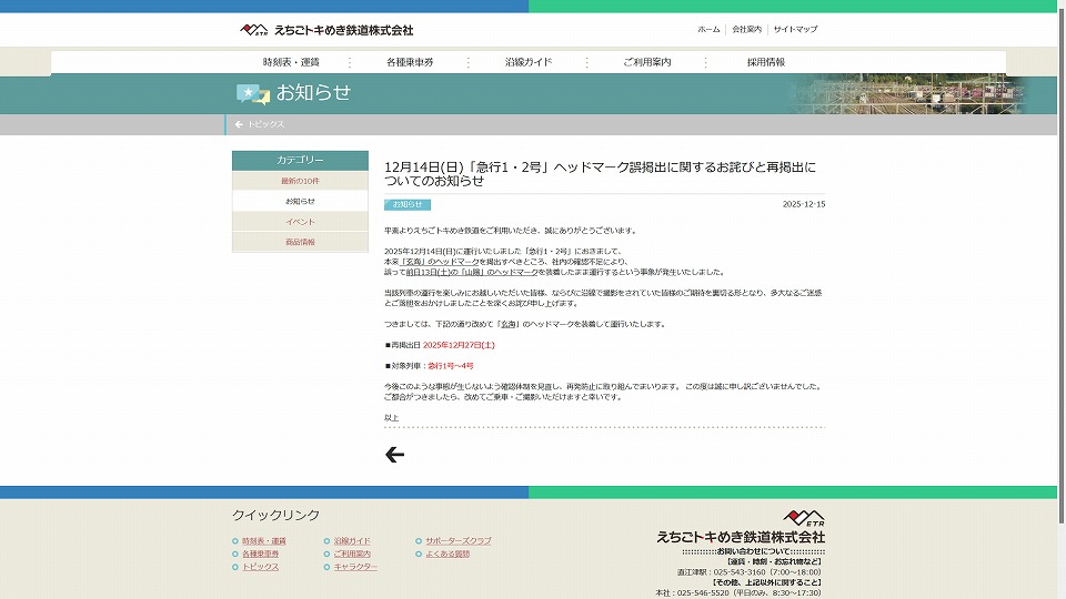 | トキ鉄は公式ページに「お詫び」を掲載し、12/27に改めて「玄海」を掲げるってさ(笑)。 |