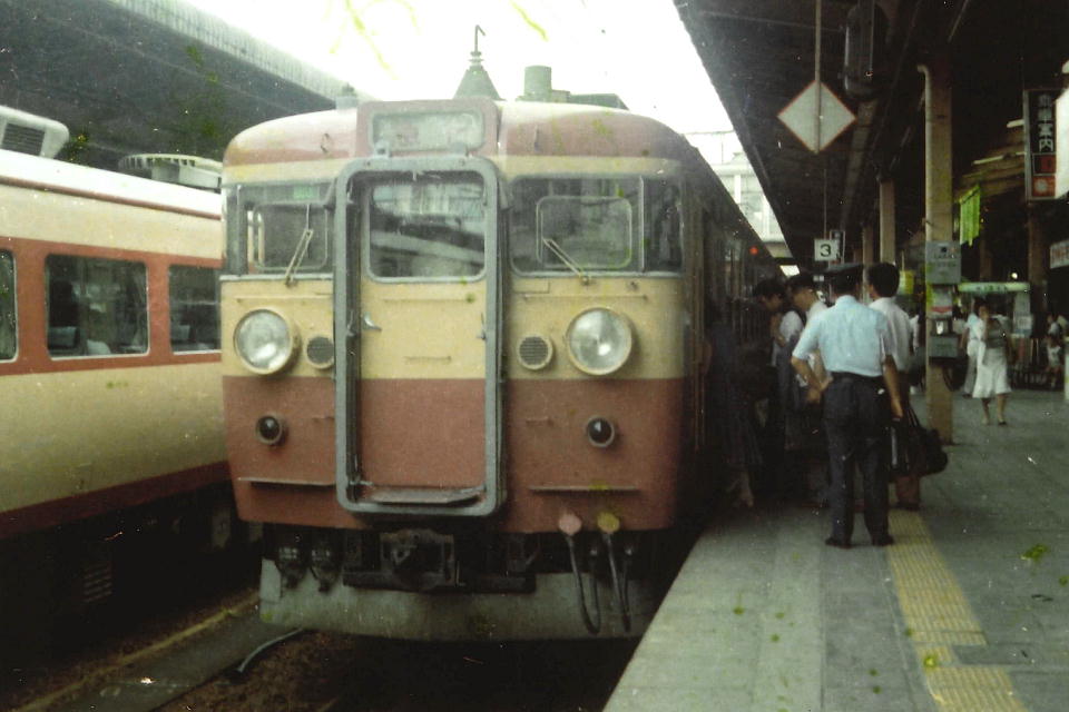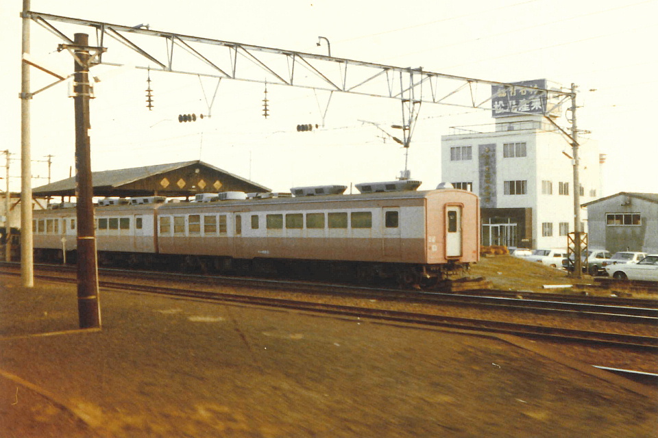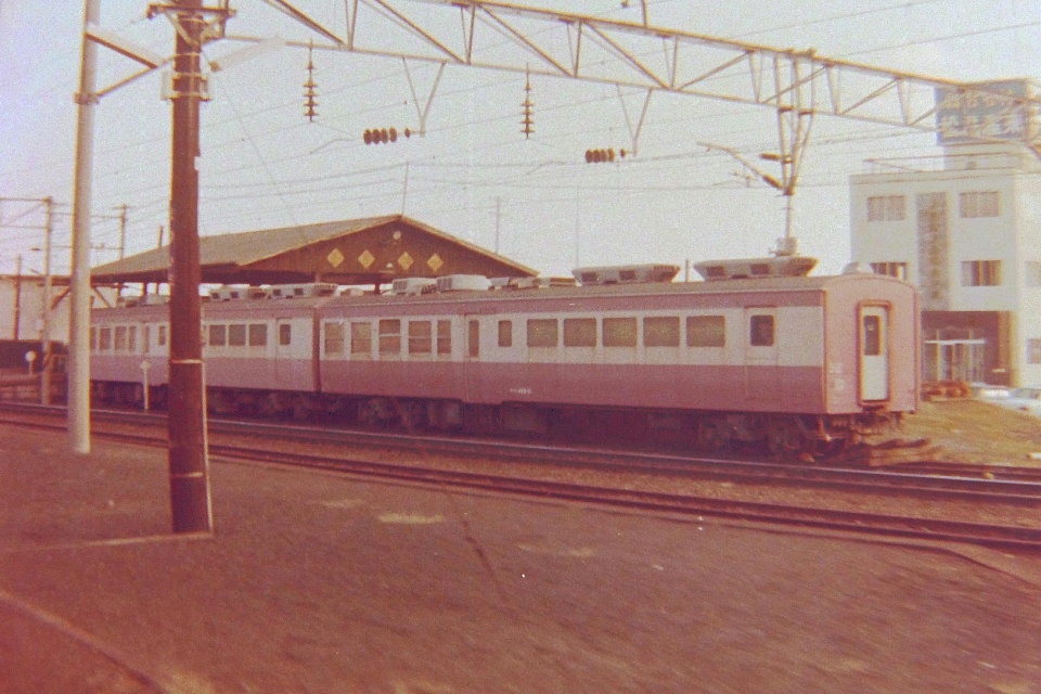 | 東北本線松島駅構内に留置してあったサハシ455。 何両か置いてあり以前から見つけていたので、この車両を撮影するために隣の塩釜から乗車したはずだ。 小学5年ぐらいのガキンチョの俺が、「オリンパスPEN S」で一所懸命撮影した。 電車が揺れたりカメラがハーフサイズだったりと条件があまりよくなかったとはいえ、 電車が松島駅構内に入ってから到着するまでの僅かな時間で3枚撮影していた。 帰りの電車からも撮影していそうなものだが、ネガに記録がない。 これは多分、フィルムを温存するために松島到着時の撮影で終わらせてしまったのではないかと考える。 この車両は「サハシ455-14」の車番が読み取れる(ネットの情報では1980/08/25廃車。)。 俺が幼稚園児の頃、新幹線「こだま」に乗ったときにビュッフェに連れていってもらって以来、 ビュッフェや食堂車が大好きになってしまった。 急行のビュッフェはこのサハシ455に限らず経験することはできなかったが、独特の窓の配列にハァハァしたのだった。 この画像は、発掘した退色がひどいネガをオモチャのような写真化ソフトでJPG化したもの。 それにしてもひどいですね…。 いずれ、もしもっとちゃんとスキャニング・色補正などできれば差し替えます。 |