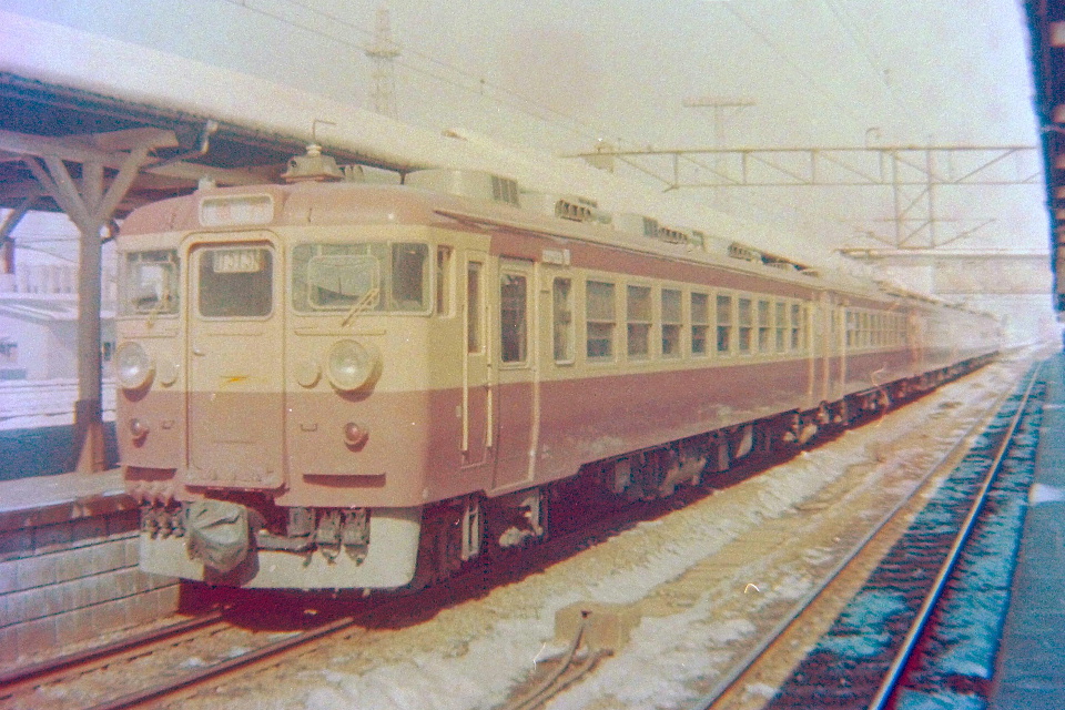 | 1515Mの表示があることから、これが正しければ「くりこま3号」だ。 線路際に雪があるし、このコマより前には雪がたくさんある中で撮影しているので、この写真は恐らく春先と思われる。 すると撮影日は、1980(昭和55)年03月23日か。 撮影場所は12:30着の盛岡駅? この日なら俺は盛岡にいるし。 バックに写っている操車線の方向や、影の具合からしてもそんな気がする。 |