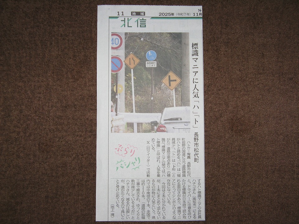 | これが信濃毎日新聞の記事。 この写真の場所は俺も気付いていたが、うまいこと「ハト」に並べられないので、これまで撮影していなかった。 「ハ」は、「片ハ」だし・・・。 |